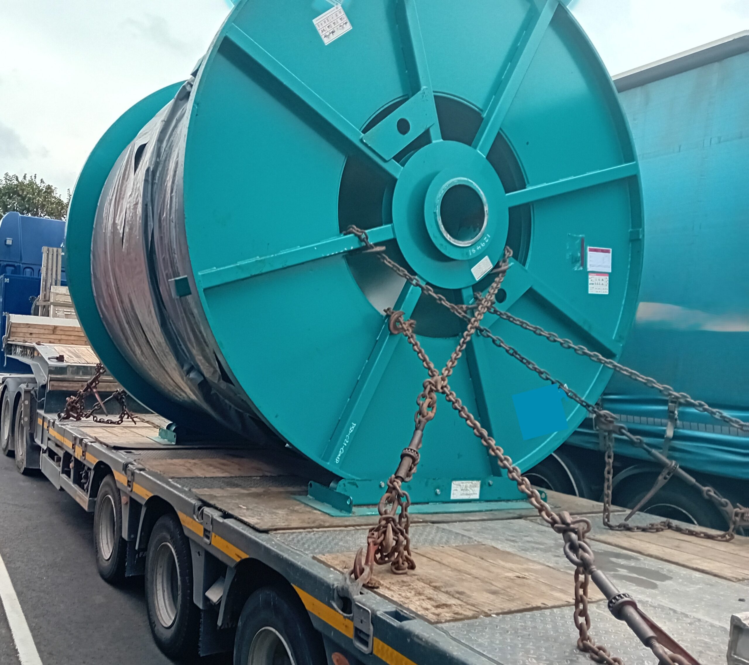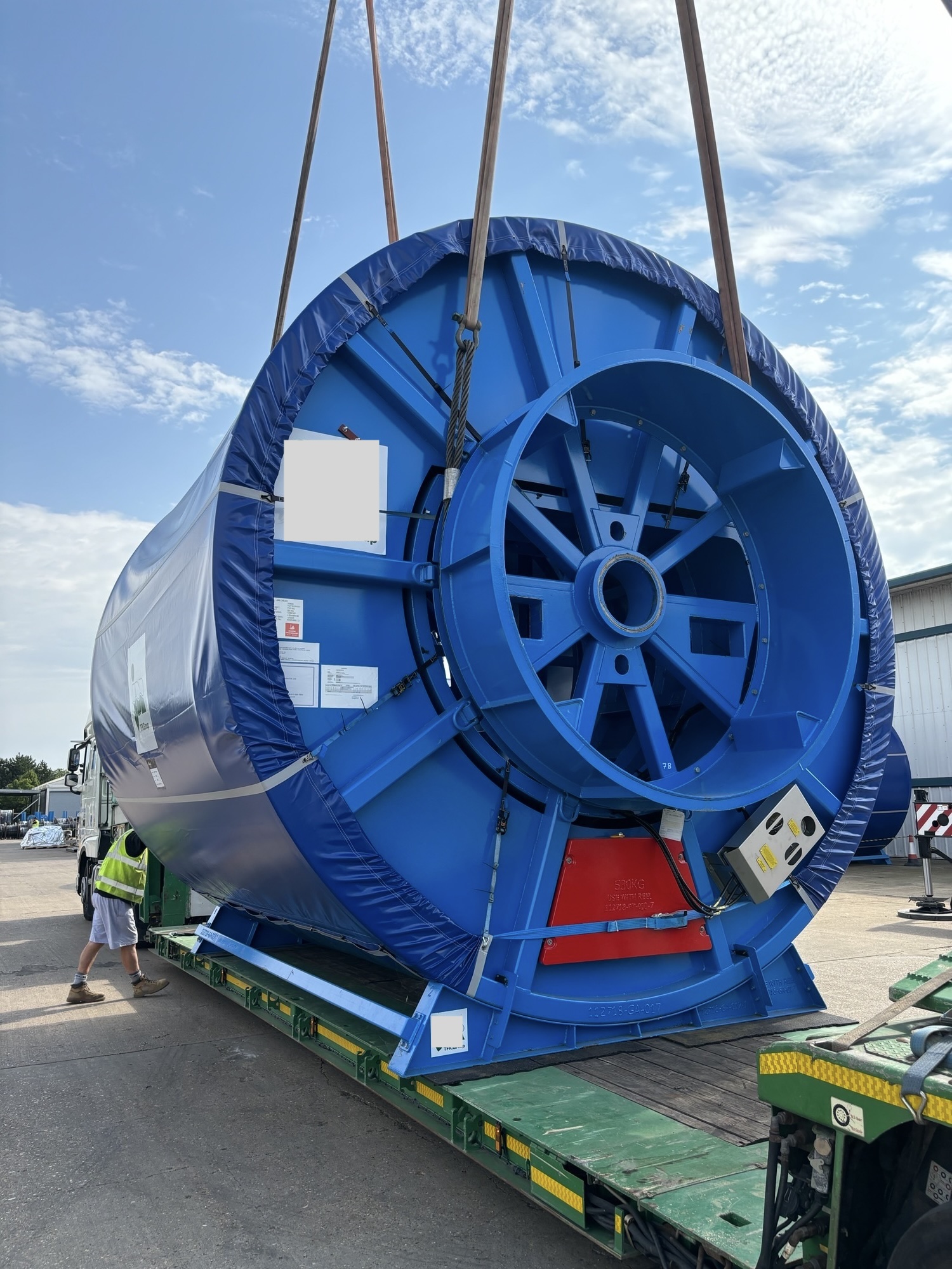 英国的卷缆! 本周,我们的英国团队又成功完成了两个卷缆的运输。这些卷缆是从制造商那里装载后,放置到重型框架箱上,运往美国和巴西。这两卷目前正安全地前往收货人的途中,我们团队也正紧锣密鼓地为下一个出运巴西做筹备。