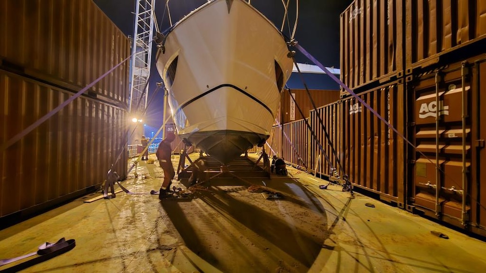 The team in Europe assisted with the movement of a new yacht this week. We ensured that the yacht was safely lifted from the water and secured for her oceangoing transport. The yacht is now safely on the way to its new home and we want to thank all partners involved in making this smooth journey.