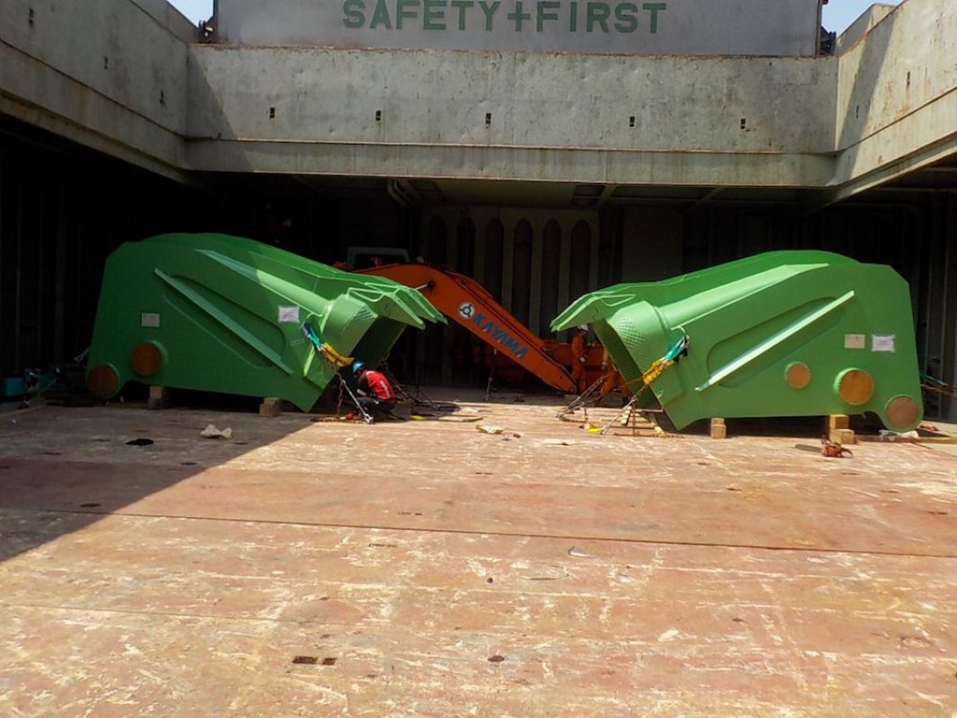 After quite some planning and avoiding a typhoon, the team in Singapore and Antwerp successfully assisted with the loading of a big, new dredging bucket. The units were loaded and lashed under the watchful eye of our port captains and are meantime safely on the way to their new home.