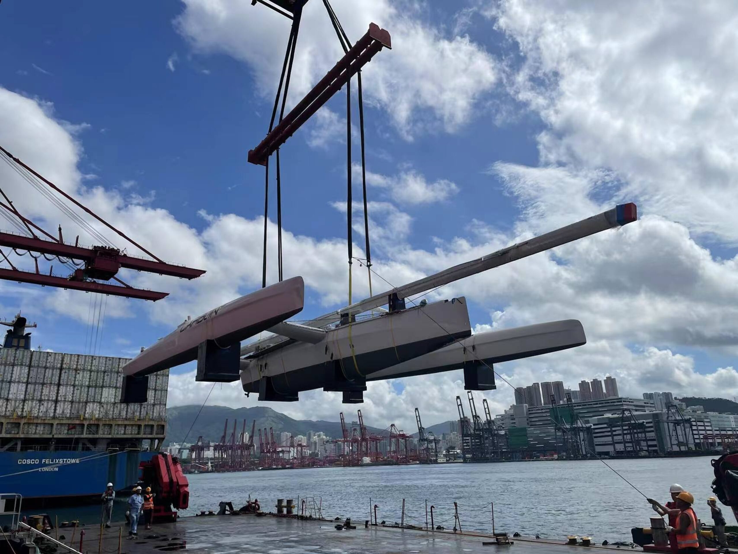 The team in Hong Kong was consulted a few months ago to move a ultra-light racing trimaran. After working closely with the owner and riggers, to ensure the boat was prepared for the lifts and sea fastening, we successfully completed the movement from Hong Kong to Australia.