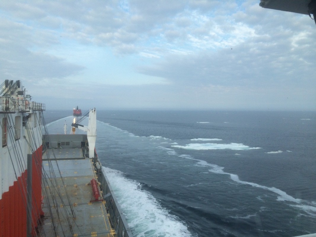 We reported earlier on a shipment of two heavy and oversized buoyancy units that were safely on the way to their destination in Europe. The team just let us know that the cargo is safely passing the Arctic and send us some pictures from the bridge to share with all of our readers.