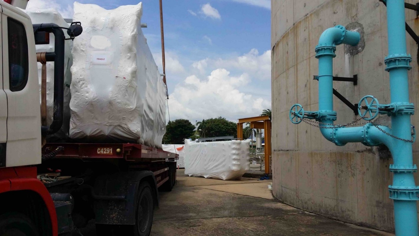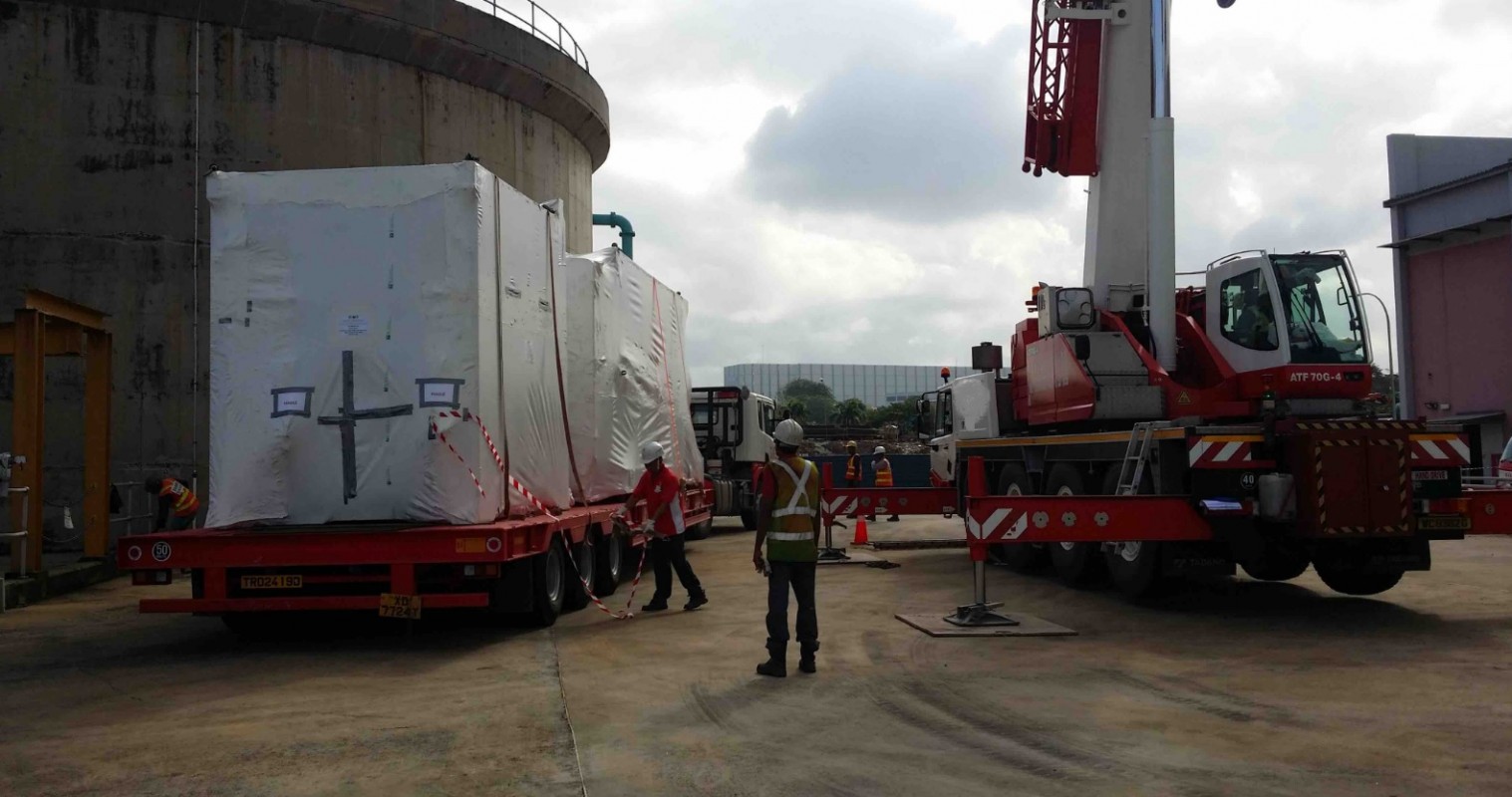 Our office in Singapore assisted with a shipment of sensitive new equipment required for the new expansion of the sludge treatment facility of the Jurong Water Reclamation Plant. The team ensured that the equipment was carefully unstuffed in Singapore and moved to site, where we placed all on foundation.