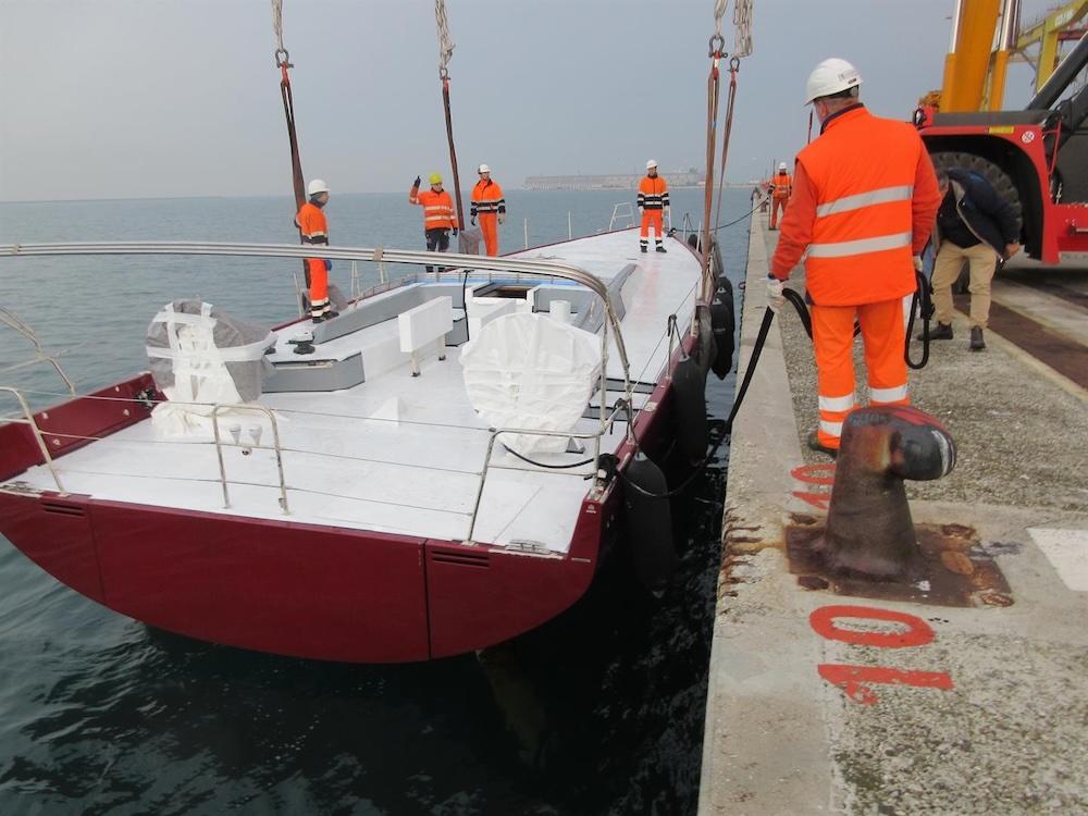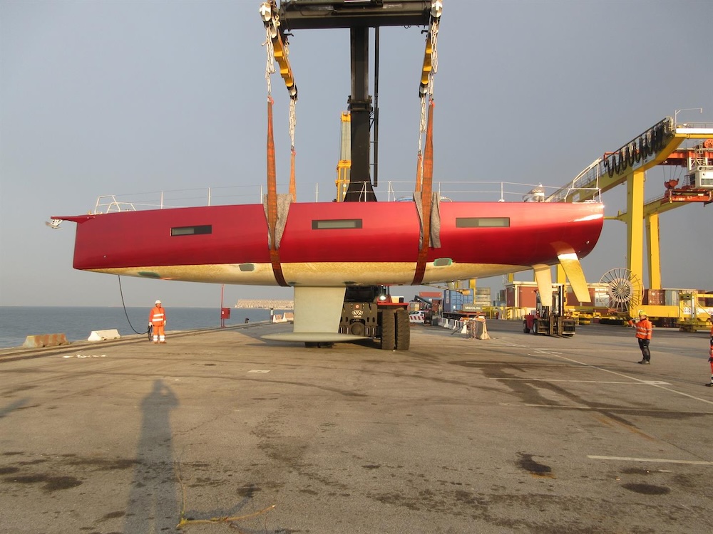 The 60 foot yacht, a high performance sailboat made for offshore racing in luxury, is now safely on the way to its new home, where we will assist to carefully unload her for a maiden voyage in Hong Kong waters.
