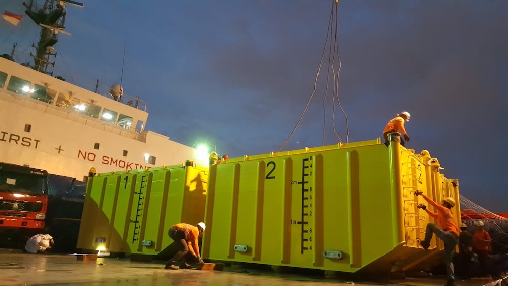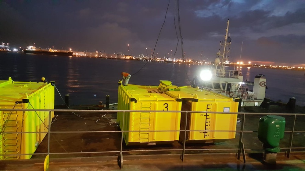 The team in the UK and Singapore shipped several units of Conventional Buoy Mooring systems before Christmas. The shipments were loaded to an awaiting barge at the shipper’s premises and transferred to Singapore for immediate over side loading to the oceangoing vessel bound for Nigeria. We ensured that the delicate cargo was handled according to the highest standards and secured safely onboard both vessels.