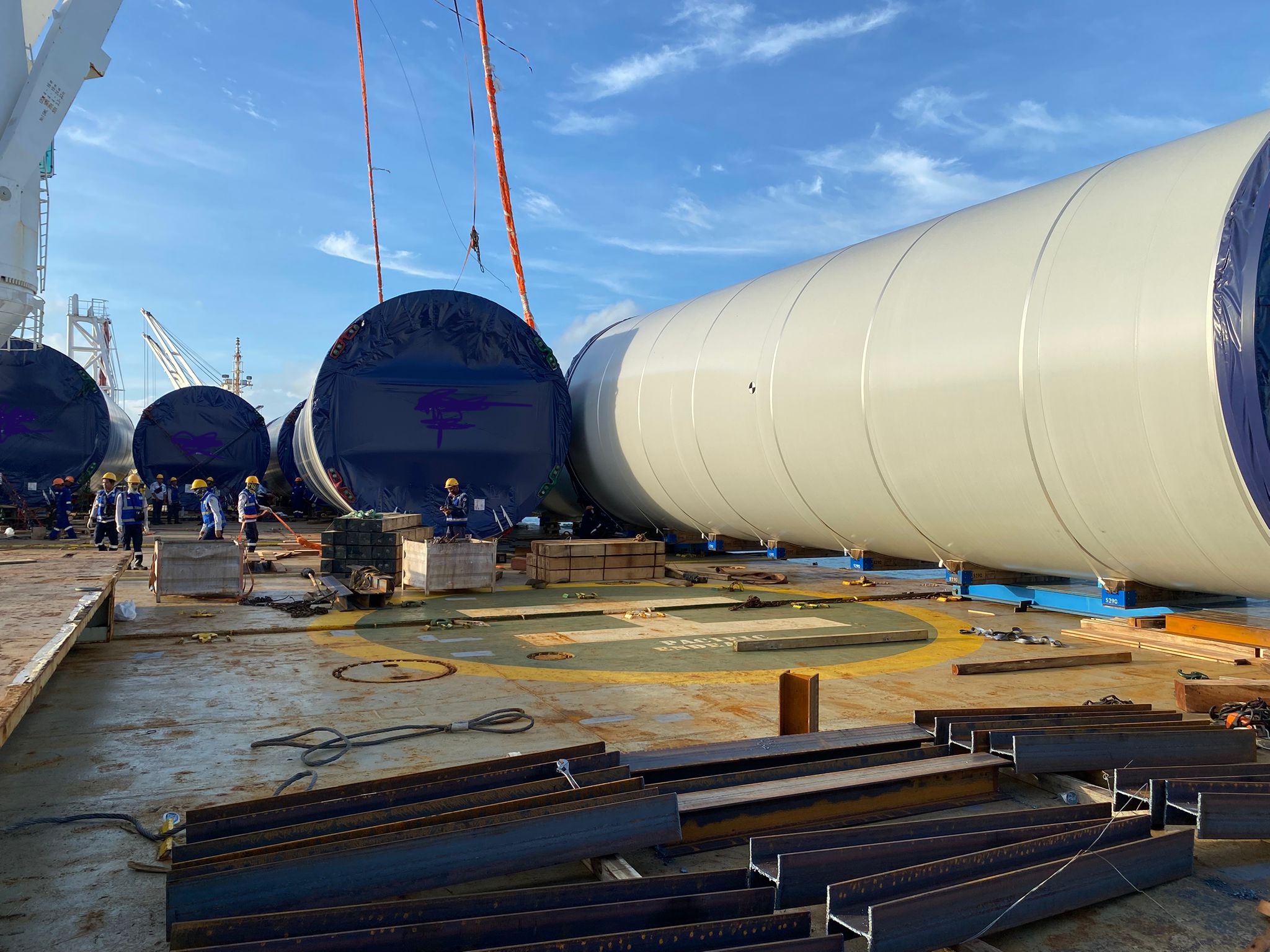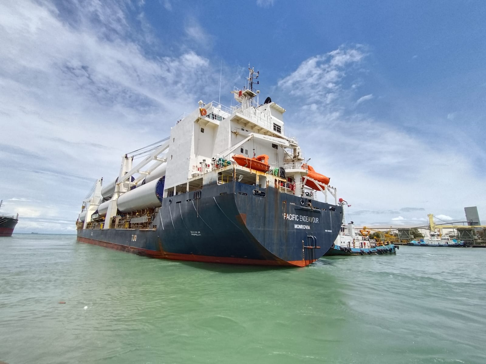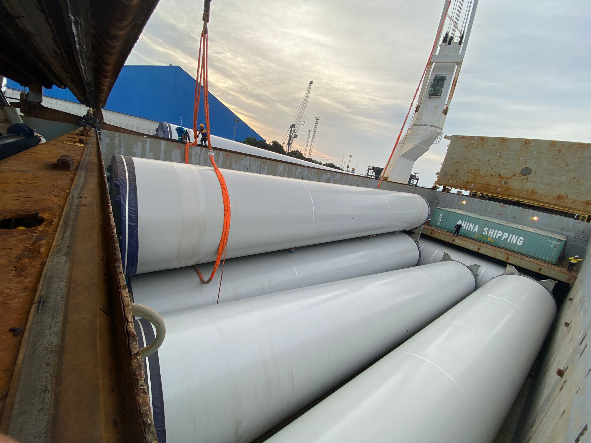 The team in Indonesia and Singapore assisted with the loading of the first shipment for a windmill project in Europe, one of a total of four shipments. We loaded the first full ship with windmill tower sections and our port captain ensured the units were safely lashed to the customers requirements.